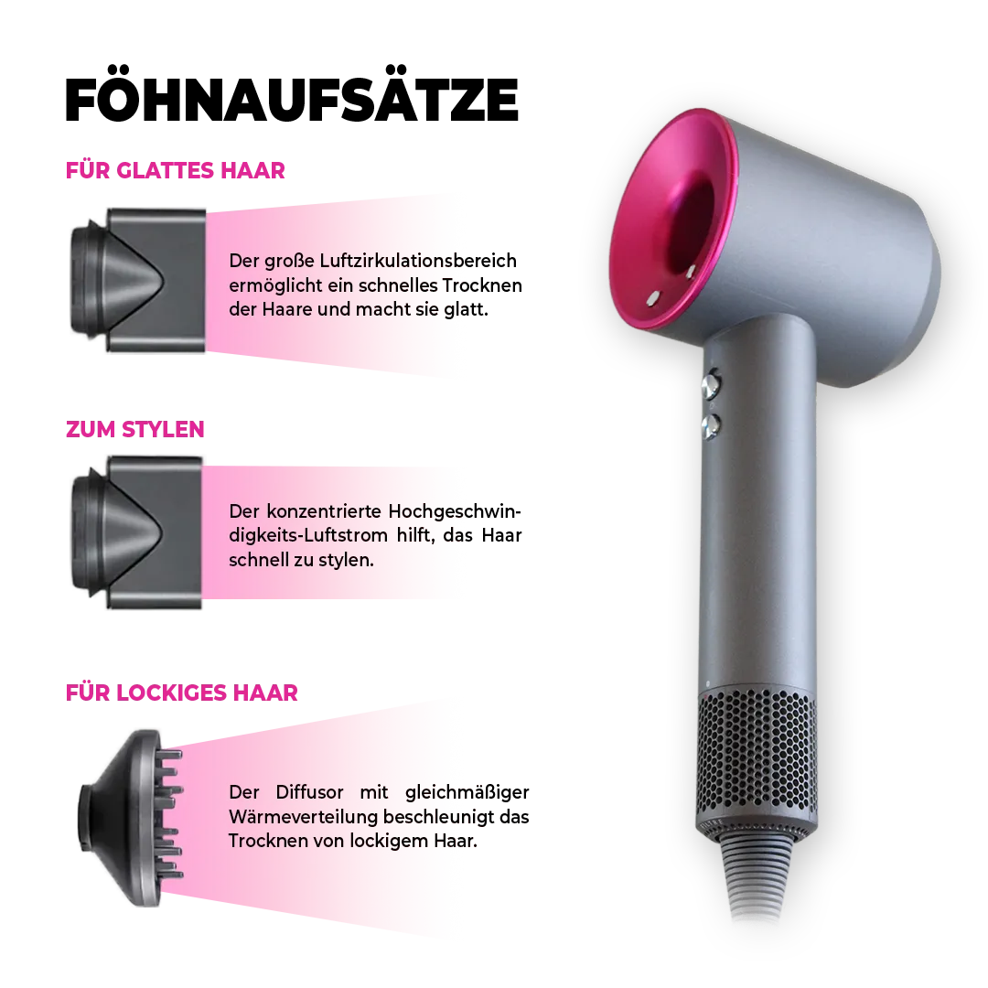 Hohe Lautstärke: Ein lauter Haartrockner macht das Föhnen unangenehm und stressig. Statt eines ruhigen Moments entsteht Hektik, besonders morgens oder spät am Abend.